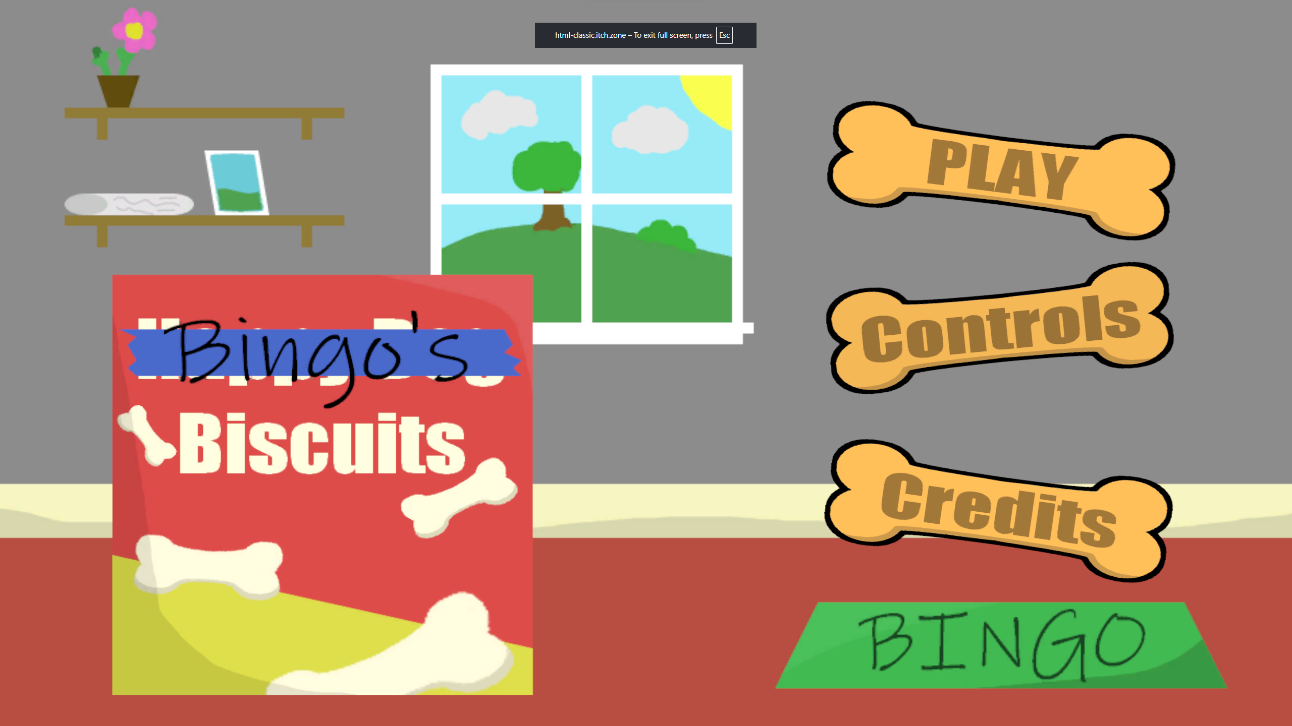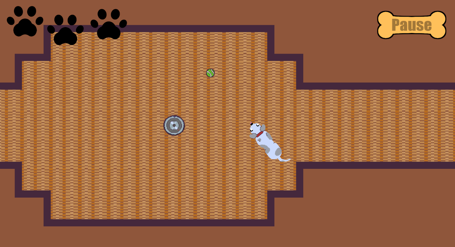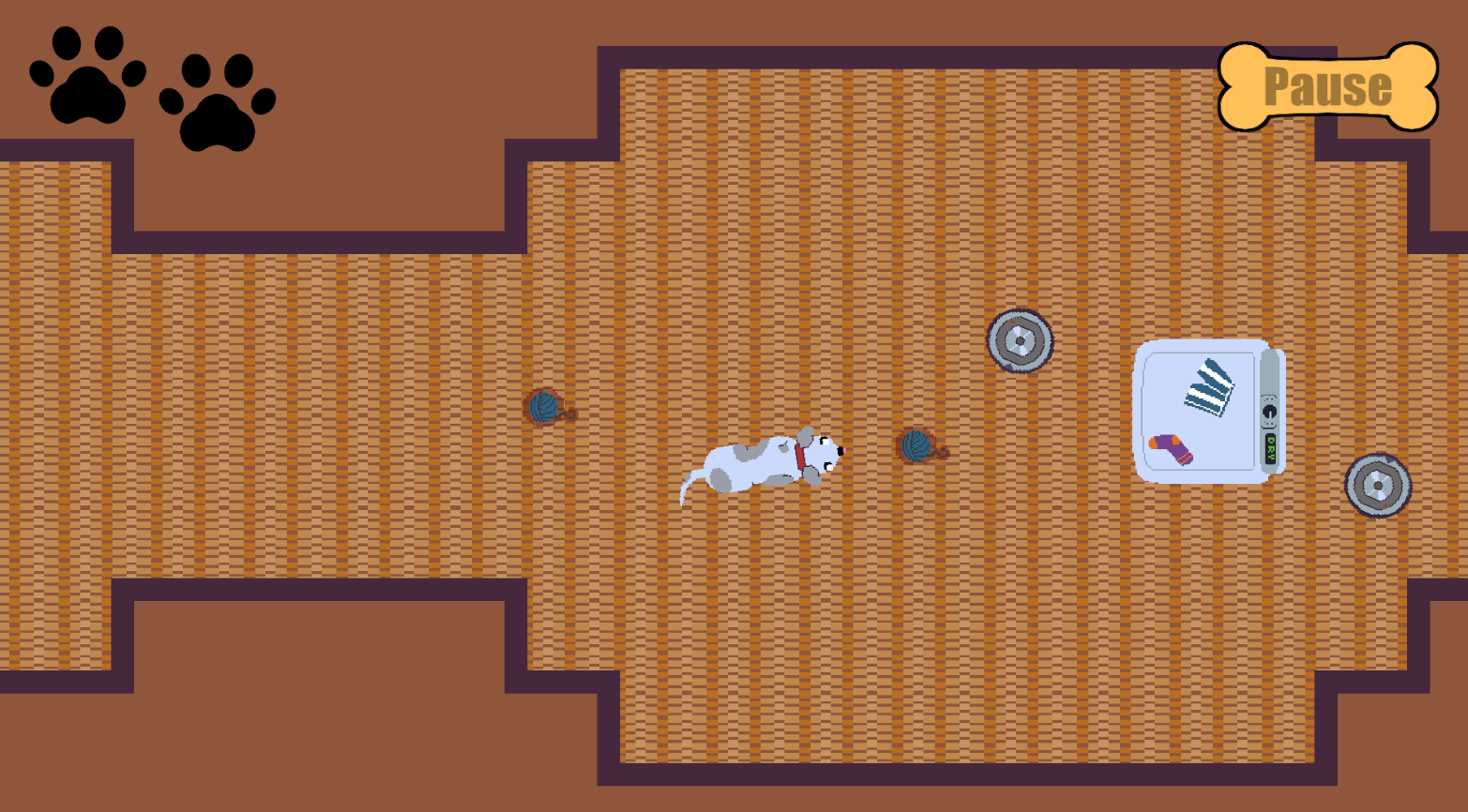 Explore Bingo's house on the search for treats! Defend yourself against roombas, cats, and dryers in your quest to eat biscuits!
